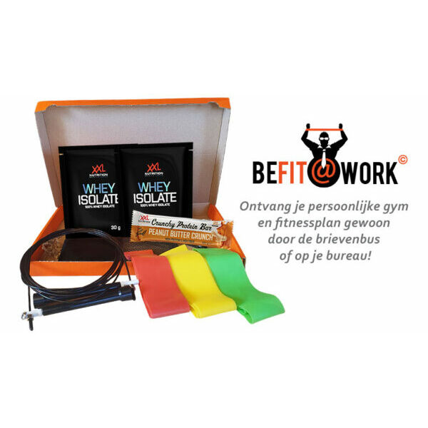 Na hard werken moet je natuurlijk weer op krachten komen, dus ook daar wordt rekening mee gehouden doordat er in dit pakket een heerlijk XXL Nutrition Crunchy Protein Bar Peanut Butter Crunch reep voor extra herstel en spieropbouw zit. Befit@work werkt samen met het bekende merk XXL Nutrition. In dit brievenbuspakket vindt u dan ook twee zakjes XXL Nutrition Whey Isolaat poeder. Een complete eiwitbron met alle aminozuren die je maar nodig hebt.