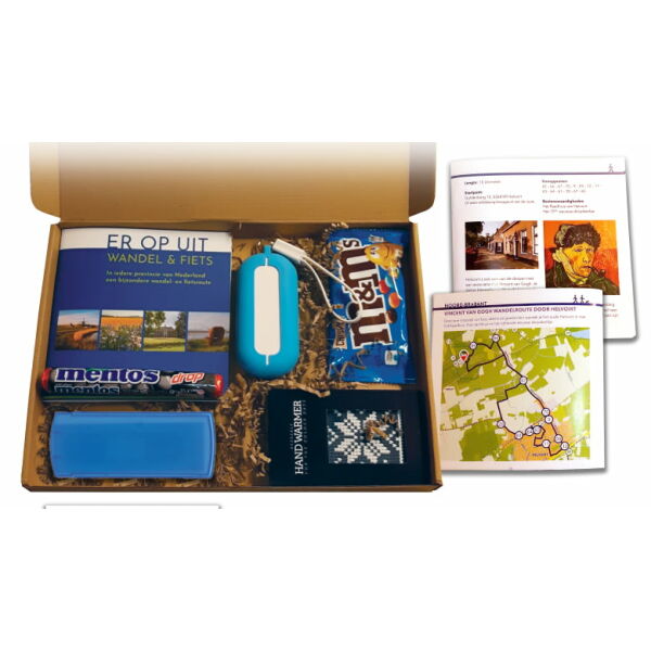 Een persoonlijke boodschapHert is ook mogelijk om een persoonlijke kaart aan het pakket toe te voegen. Bijvoorbeeld een uitnodiging voor een gezamenlijke fiets of wandeltocht. Onze DTP-er kan een passend ontwerp voor u maken. Neem contact met ons op voor de prijzen en de mogelijkheden.