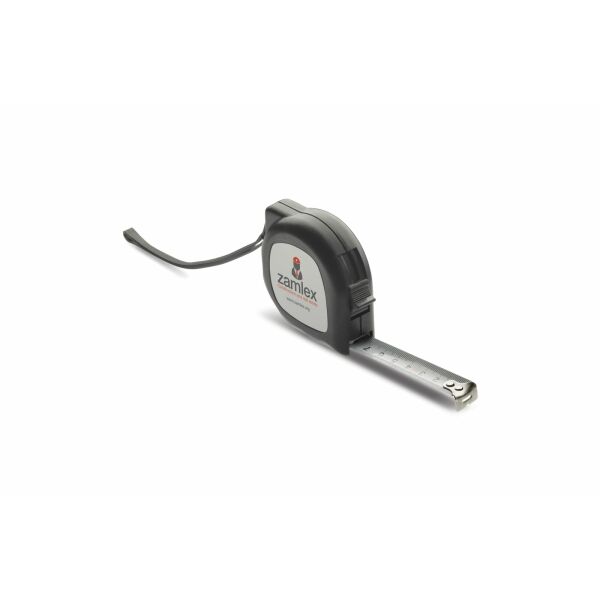 Rolmaat van vijf meter. Groot drukoppervlak.